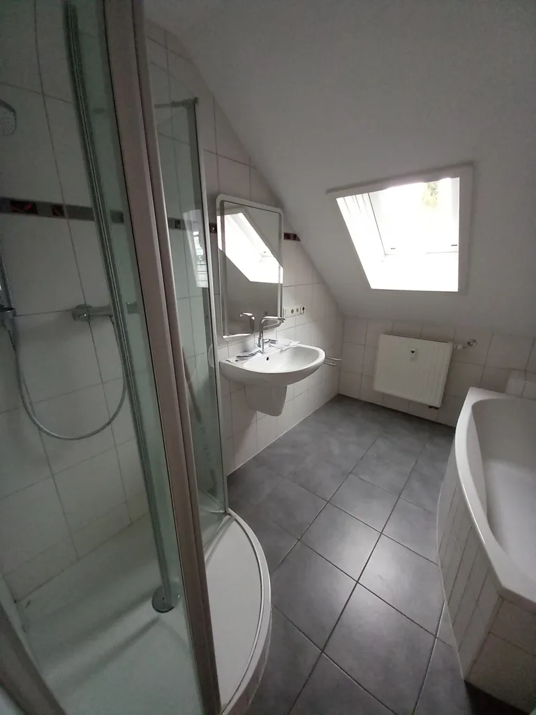 | Bad mit Dusche, Wanne, Fenster |