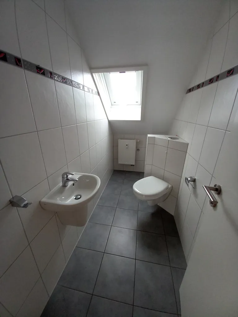 Diese helle Dachgeschoßwohnung befindet sich in einem gepflegten Einfamilienhaus in einer bevorzugten Wohngegend. Alle Räume sind vom Flur aus separat begehbar. Ein Kellerraum zur Wohnung und eine Waschküche sind vorhanden.
